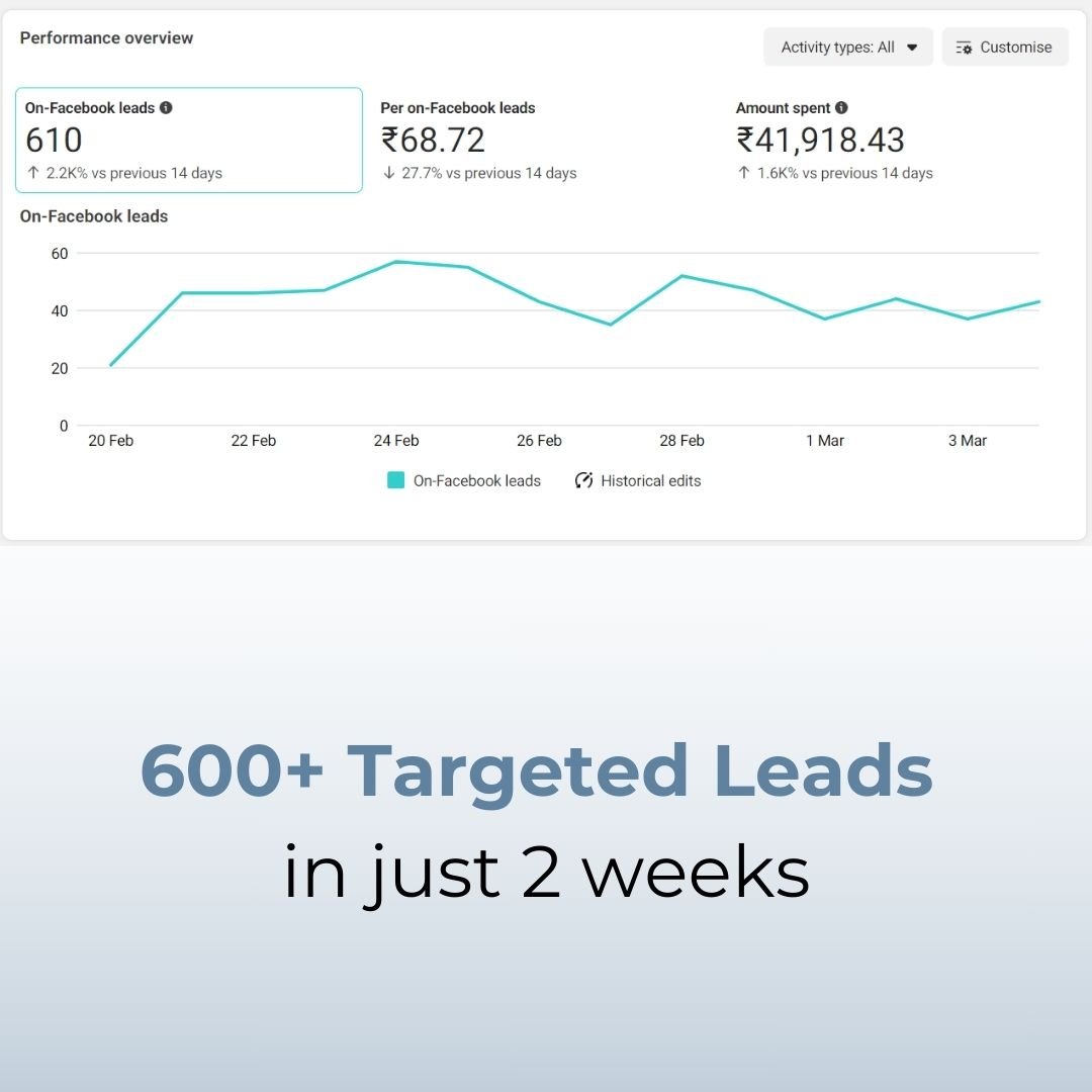 We launched a targeted ad campaign on Meta platforms, successfully generating over 500 leads every